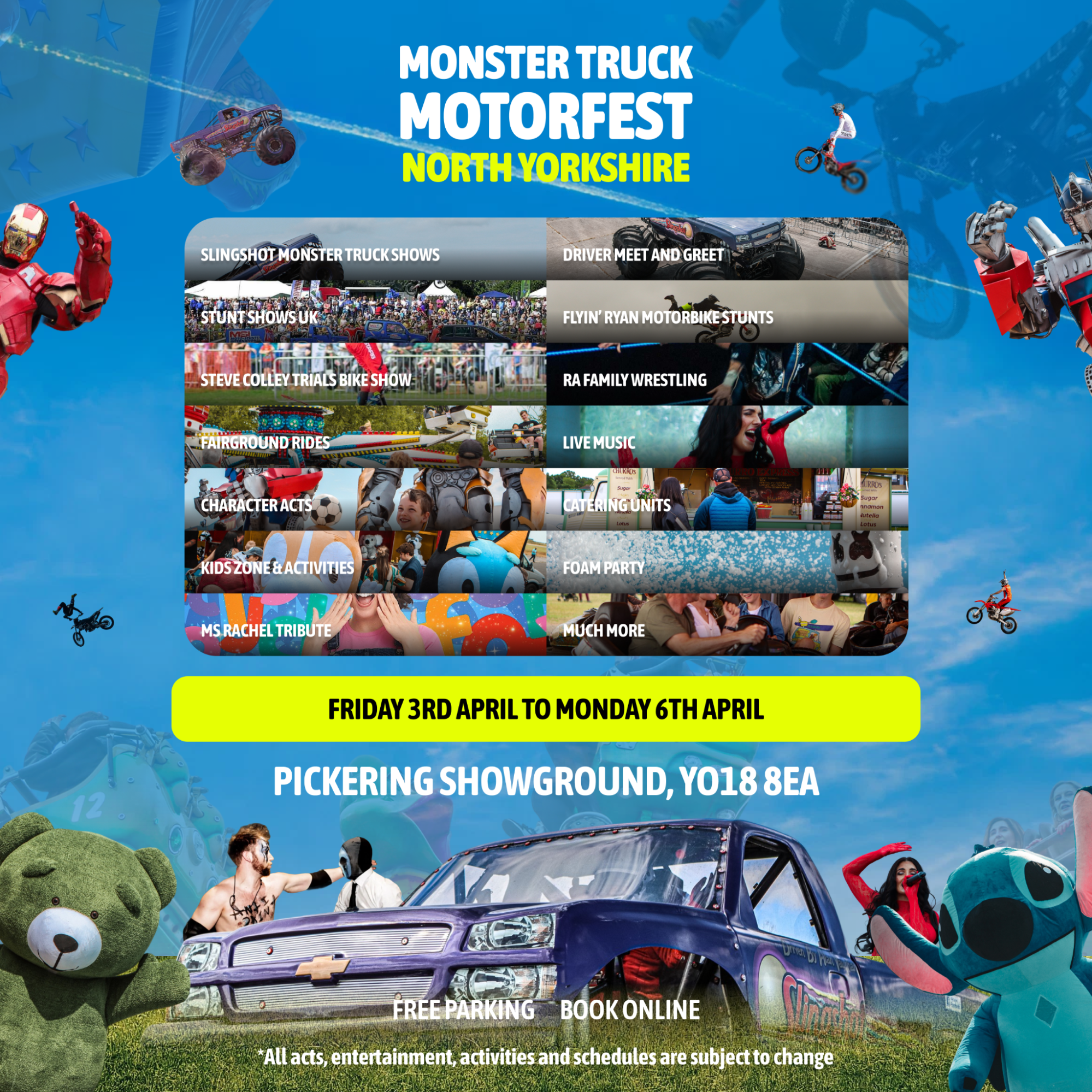 “The mighty Slingshot Monster Truck will dominate the arena, and there’s so much more happening. Daredevil motorbikes from Flyin Ryan, jaw-dropping stunts from StuntShowsUK, and even World Champion Steve Colley performing tricks you have to see to believe. Add in live music, fairground rides, a fun food village, and it really becomes a event for the whole family.”